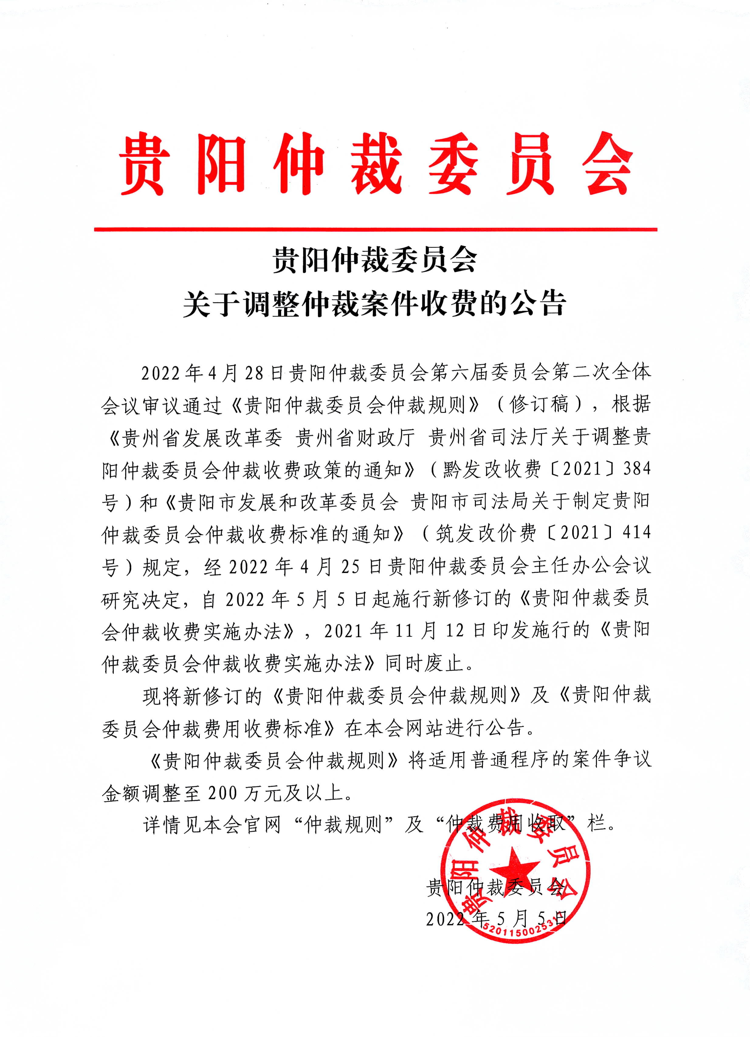 贵阳仲裁委员会关于调整仲裁案件收费的公告