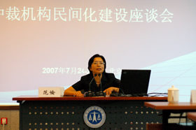 2007年7月24-25日,“仲裁机构民间化建设座谈会”根据会议日程,在24日进行了主题发言与研讨后,于25日结合由本会牵头代为草拟的《关于深化仲裁机构体制改革试点方案(征求意见稿)》,分别进行了分组讨论、自由发言和总结,会议圆满结束。