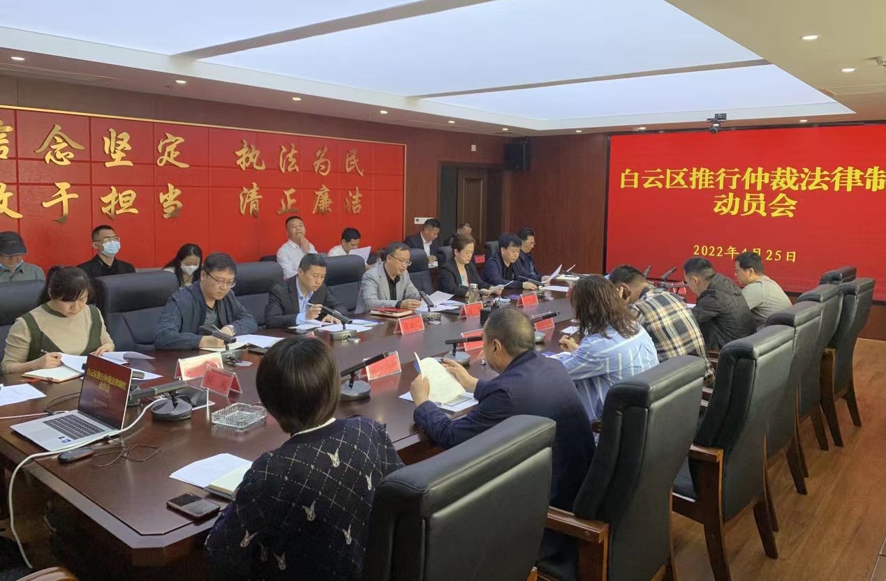 为加快法治政府建设,切实推行仲裁法律制度,充分发挥仲裁在解决民商事争议、化解社会矛盾中的重要作用,优化白云区投资发展环境,推动社会和谐稳定发展,4月25日下午,白云区委政法委召开了“推行仲裁法律制度动员会”,会议由白云区区委常委、区委政法委书记胡军主持。