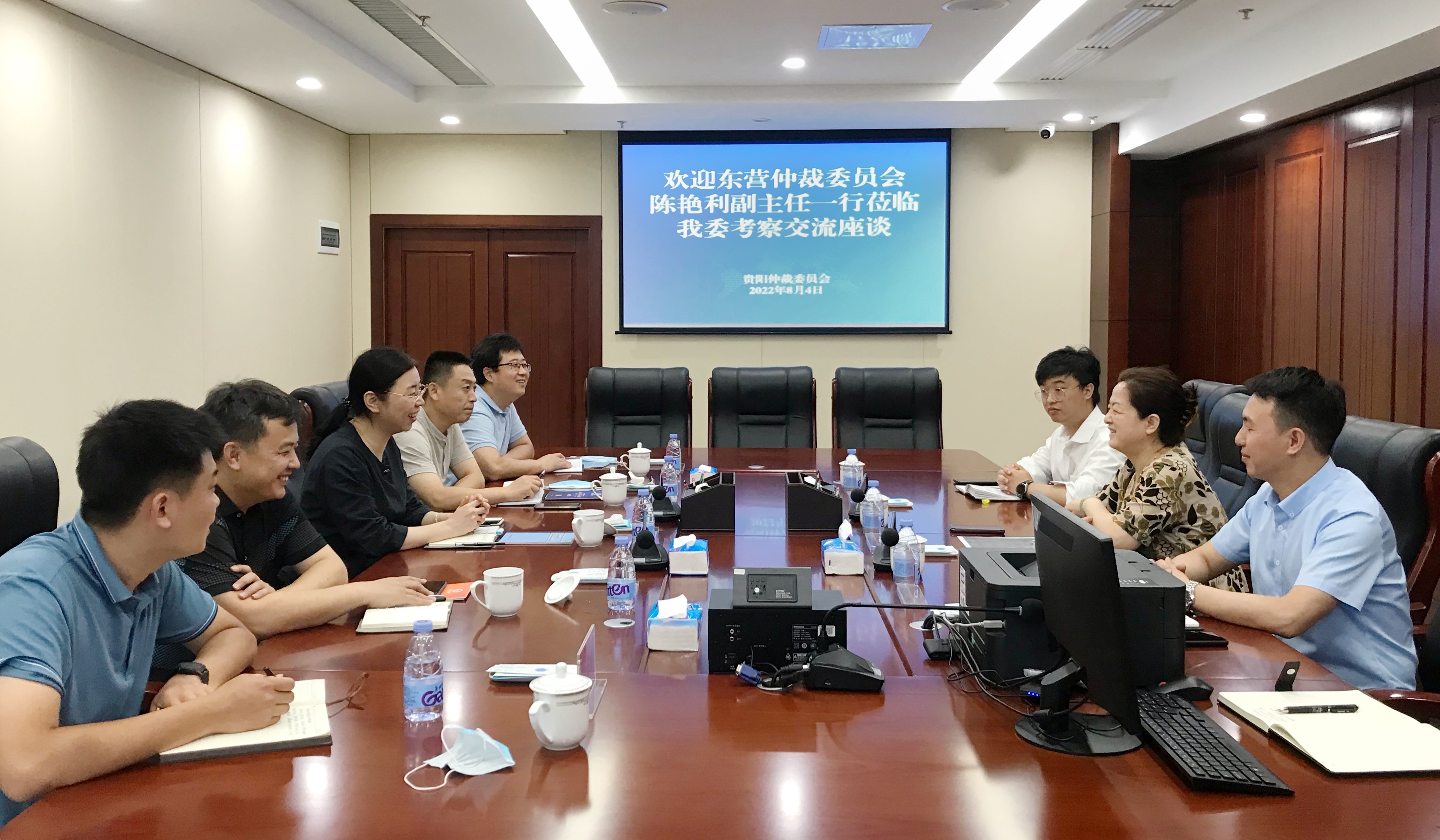 8月4日上午,东营仲裁委员会办公室党组成员、副主任陈艳利一行到贵阳仲裁委员会考察交流座谈,我委主任卜贵荣热情接待。