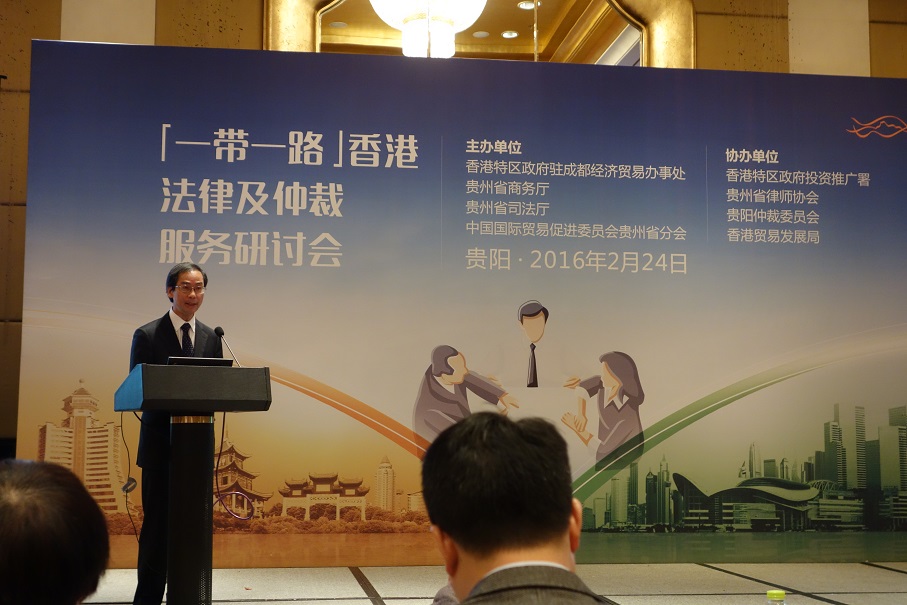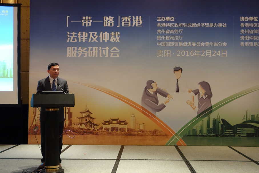 2月24日,由香港特区政府驻成都经济贸易办事处、贵州省商务厅、省司法厅、省贸促会共同主办,贵州省律师行业协会、贵阳仲裁委员会协办的“ ‘一带一路’香港法律及仲裁服务研讨会”在筑成功举行。来自香港特区政府律政司、香港大律师公会、香港国际仲裁中心、中国国际经济贸易仲裁委员会香港仲裁中心、香港特区政府投资推广署及黔、港律师事务所资深律师、仲裁员、专家,黔、港两地知名企业负责人、法务专员近200人参会。我委办主任卜贵荣带领各处室负责人及相关工作人员参加会议。