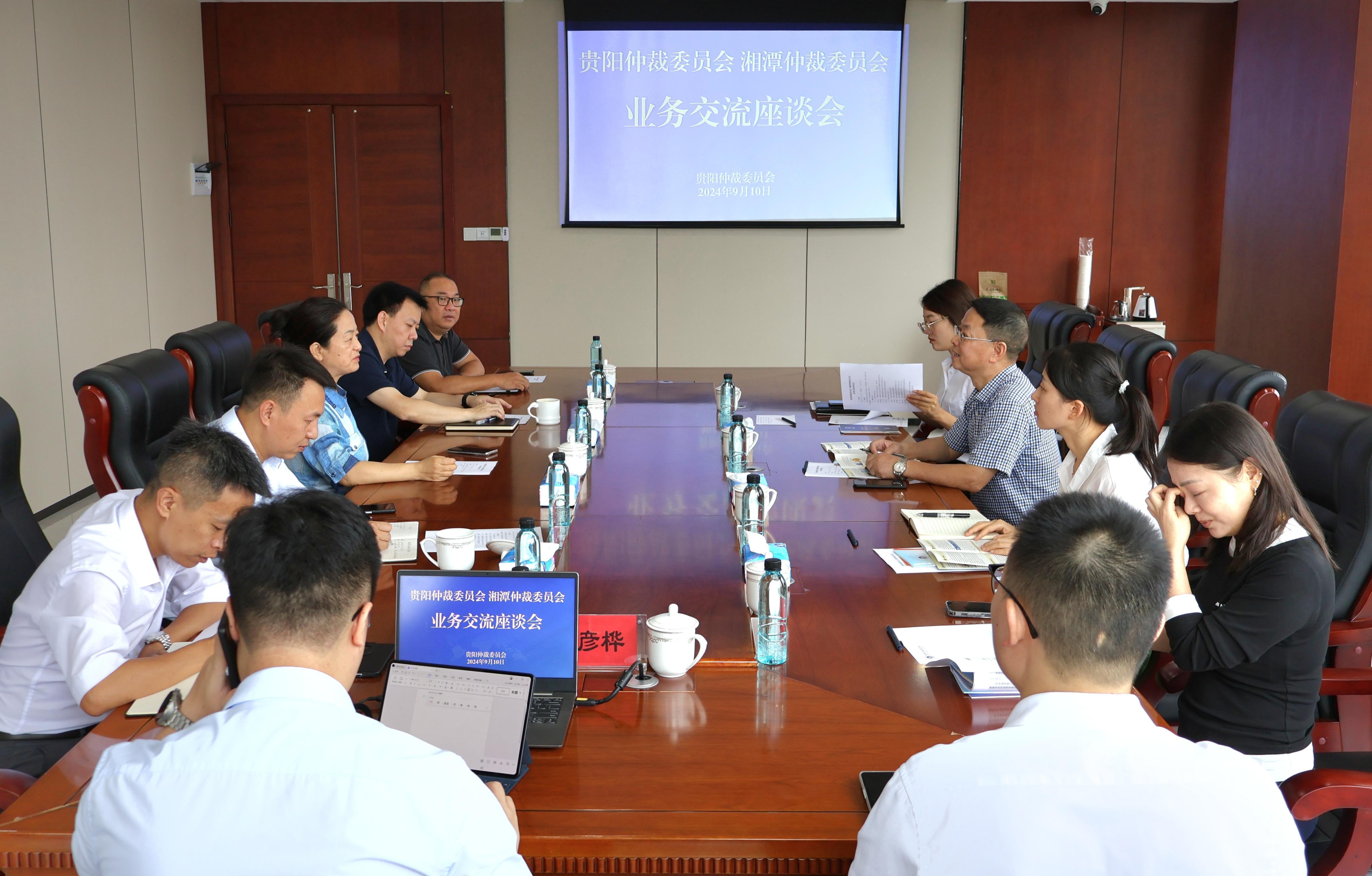 9月10日上午,湘潭仲裁委员会到本会调研交流仲裁工作。湘潭市司法局党组成员、副局长彭自力,湘潭市司法局公共法律服务管理科副科长李尚勤,湘潭仲裁委员会秘书处党支部副书记沈景,湘潭仲裁委员会网络仲裁院院长马智坚,本会主任卜贵荣、副主任王常毅、立案调解处处长吴坤刚、仲裁发展处处长李驹、综合工作处处长黄立平、案件管理处副处长蒲彦桦参加调研座谈。