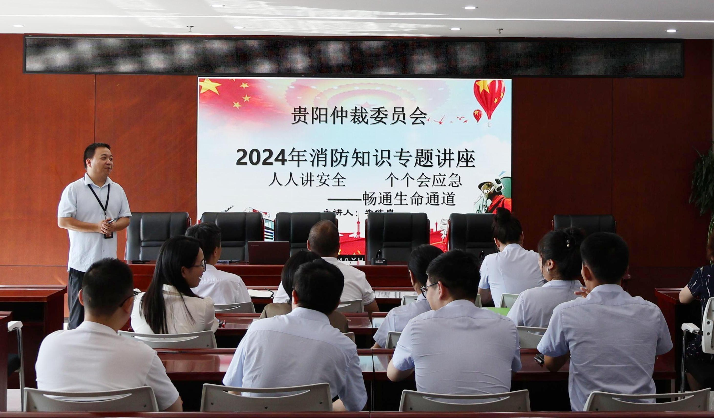 9月6日下午,贵阳仲裁委员会举办了以“人人讲安全 个个会应急——畅通生命通道”为主题的消防知识讲座,各处室共20余名职工到场参加。