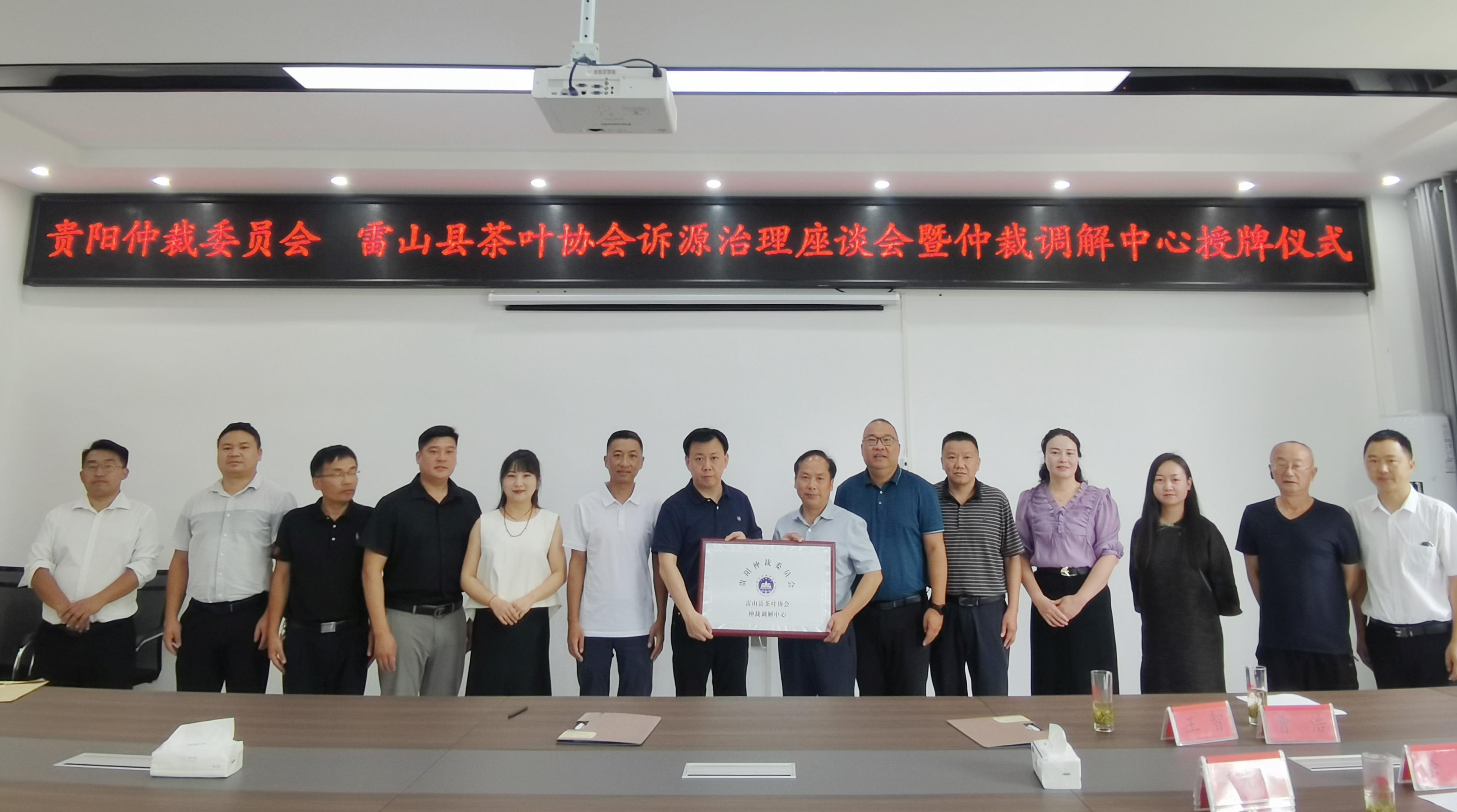 8月13日上午,“贵阳仲裁委员会 雷山县茶叶协会仲裁调解中心”授牌仪式顺利举行。我委副主任王常毅及黔东南分会有关人员,雷山县农业农村局党组成员、雷山县茶叶产业技术服务中心主任文晓周,雷山县茶叶协会会长王智及部分副会长单位、茶企代表参加活动。
