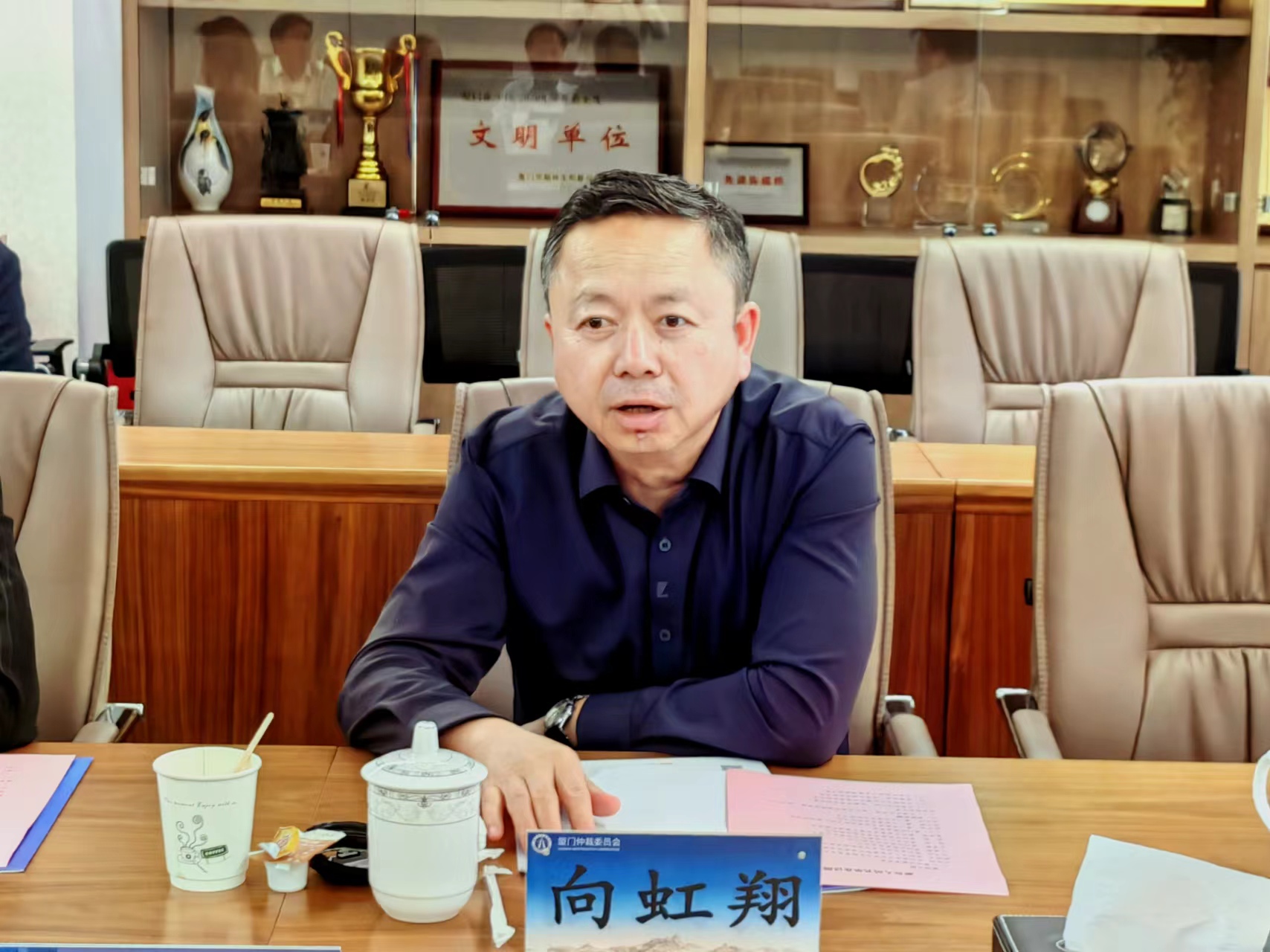 4月19日,贵州省政协社会与法制委员会、贵阳市人大常委会、贵阳仲裁委员会组成的调研组赴厦门仲裁委员会调研仲裁工作。