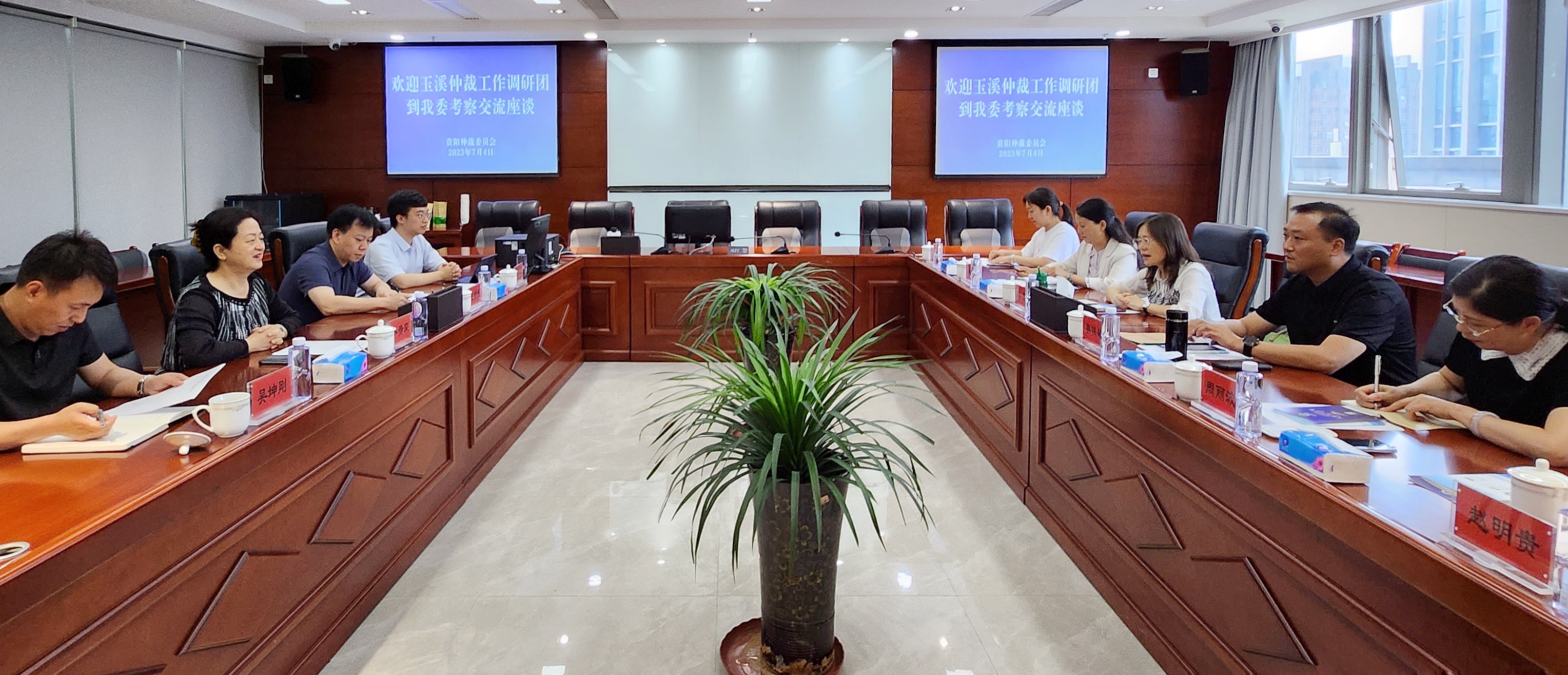 7月4日下午,玉溪仲裁委员会马莎秘书长一行到我委考察交流座谈,我委主任卜贵荣热情接待。