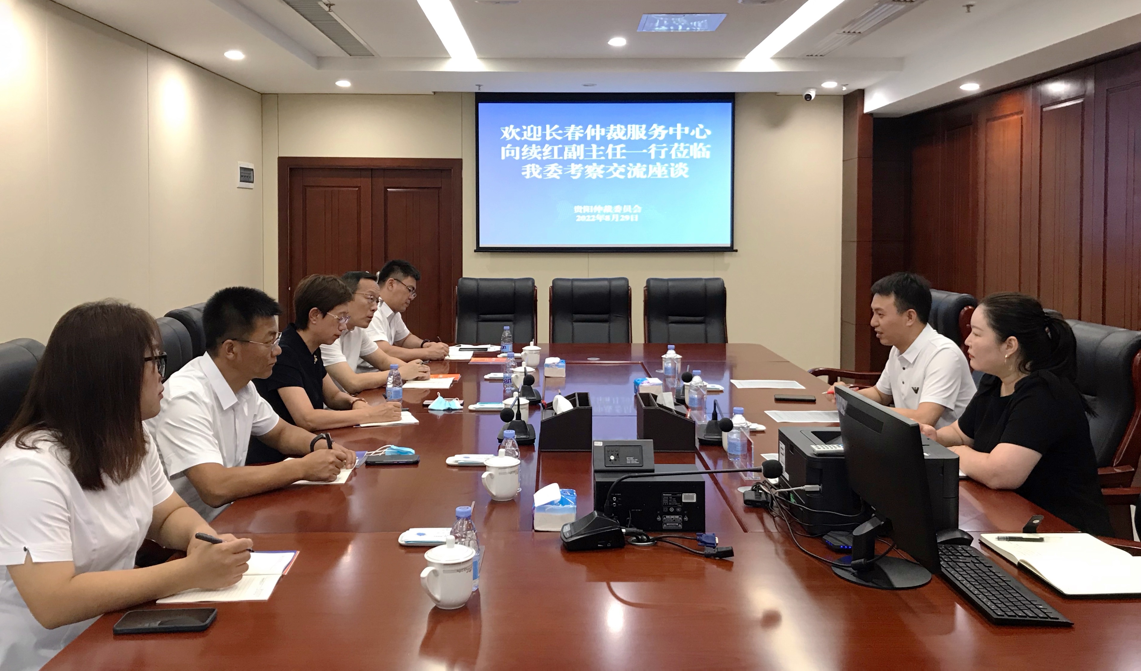 8月29日上午,长春仲裁委员会(长春仲裁服务中心)向续红副主任带领立案部、办案部负责人等一行五人到贵阳仲裁委员会考察交流座谈,我委综合工作处处长吴坤刚主持座谈会,综合工作处副处长沈蓉、案件管理处副处长蒲彦桦参加交流座谈。