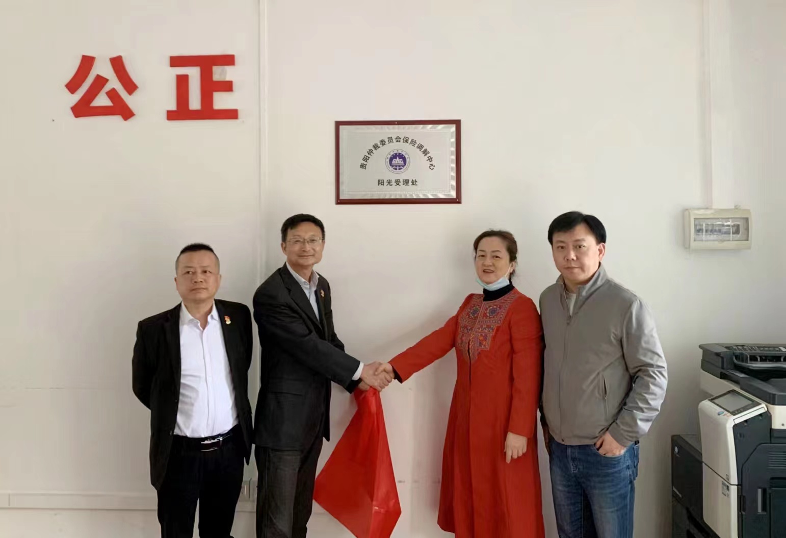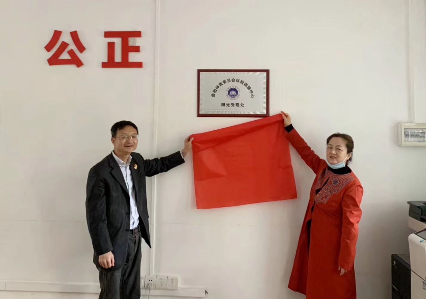 4月19日下午,贵阳仲裁委员会保险调解中心阳光受理处分别在贵阳市交管局南明分局、云岩分局正式挂牌成立。我委主任卜贵荣、阳光财产保险股份有限公司贵州省分公司副总经理杨飞鸿在贵阳市交管局南明分局共同为阳光受理处揭牌。