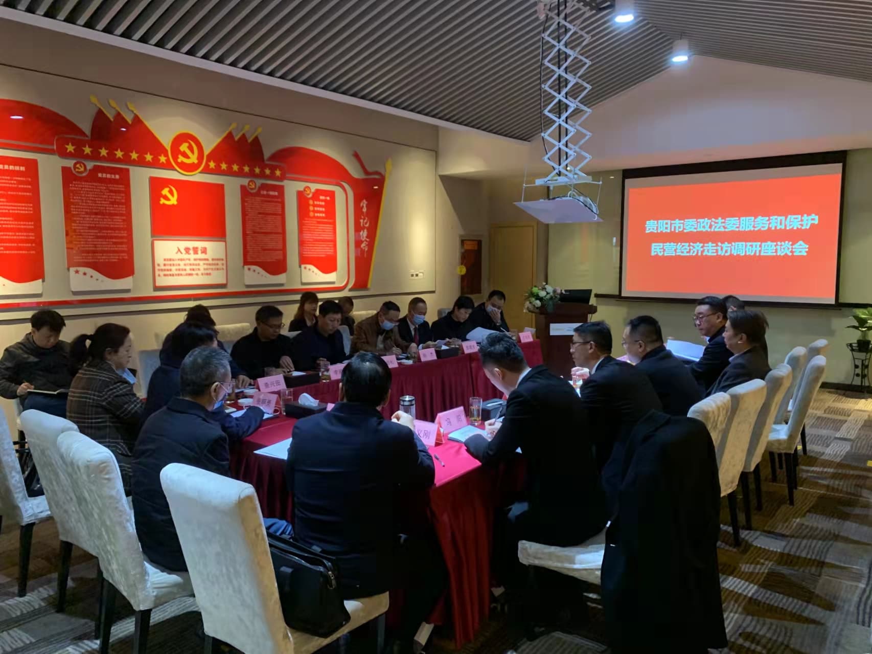 为深入贯彻落实“强省会”五年行动战略部署,更好地提升执法司法规范化和能力水平,服务和保障民营经济发展,打造良好的营商环境,3月10日上午,由市委政法委张明勇副书记带队,市法院、市检察院、贵阳仲裁委、市律协、清镇市政法委、法院、检察院及贵安新区公安局等单位参与,到贵安新区进行企业走访调研,倾听企业心声,解决企业困难。调研组一行先后来到恒立(贵阳)产业园、贵安华为数据中心、贵安新区棕榈文化置业有限公司三家公司实地调研,浙江朱仁民生态艺术投资有限公司、中交贵州海绵城市投资建设有限公司及腾讯贵安七星数据中心参加座谈。与会的五家民营企业围绕公司发展及经营现状,对公、检、法执法司法的意见建议以及对打造贵安新区法治营商环境的愿景等作了发言,调研组成员单位代表对涉及的工作予以回应的同时也表示,今后将会为贵安新区的快速发展提供强有力的法律服务保障。