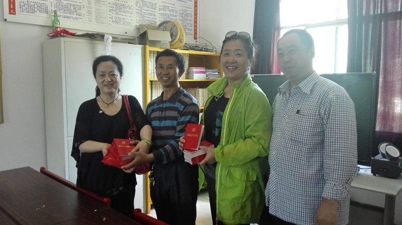 卜贵荣一行来到石桥村村委会后,看望了驻村帮扶干部黄胜祥、王常毅等几位同志,了解驻村干部的工作、住宿等情况,并对驻村干部进行了亲切的慰问。慰问结束后,卜贵荣、陶冶将崭新的几十本《党章》交到了村党支部书记王久富、村党支部副支书、驻村干部黄胜祥手上。