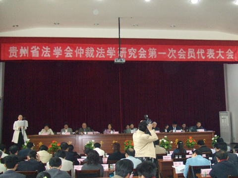 2007年4月25日贵州省仲裁法学研究会第一次会员代表大会在贵阳召开。中国仲裁法学研究会秘书长高菲、省法学会专职副会长兼秘书长赖梁盟、省政府行政复议办专职副主任高煜明出席了大会。贵阳市、遵义市、六盘水市以及毕节和都匀地区的会员代表近百人参加了大会。